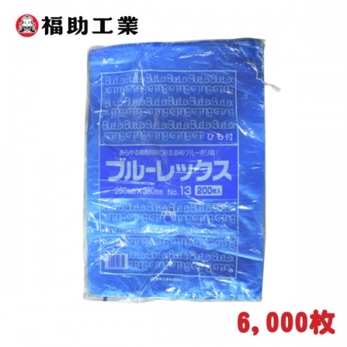 鮮魚・青果 販売用 ポリ袋 ブルーレックス 新規格袋 No.13 吊り下げひもつき 26×38cm 厚さ0.012mm 6,000枚 - 福助工業